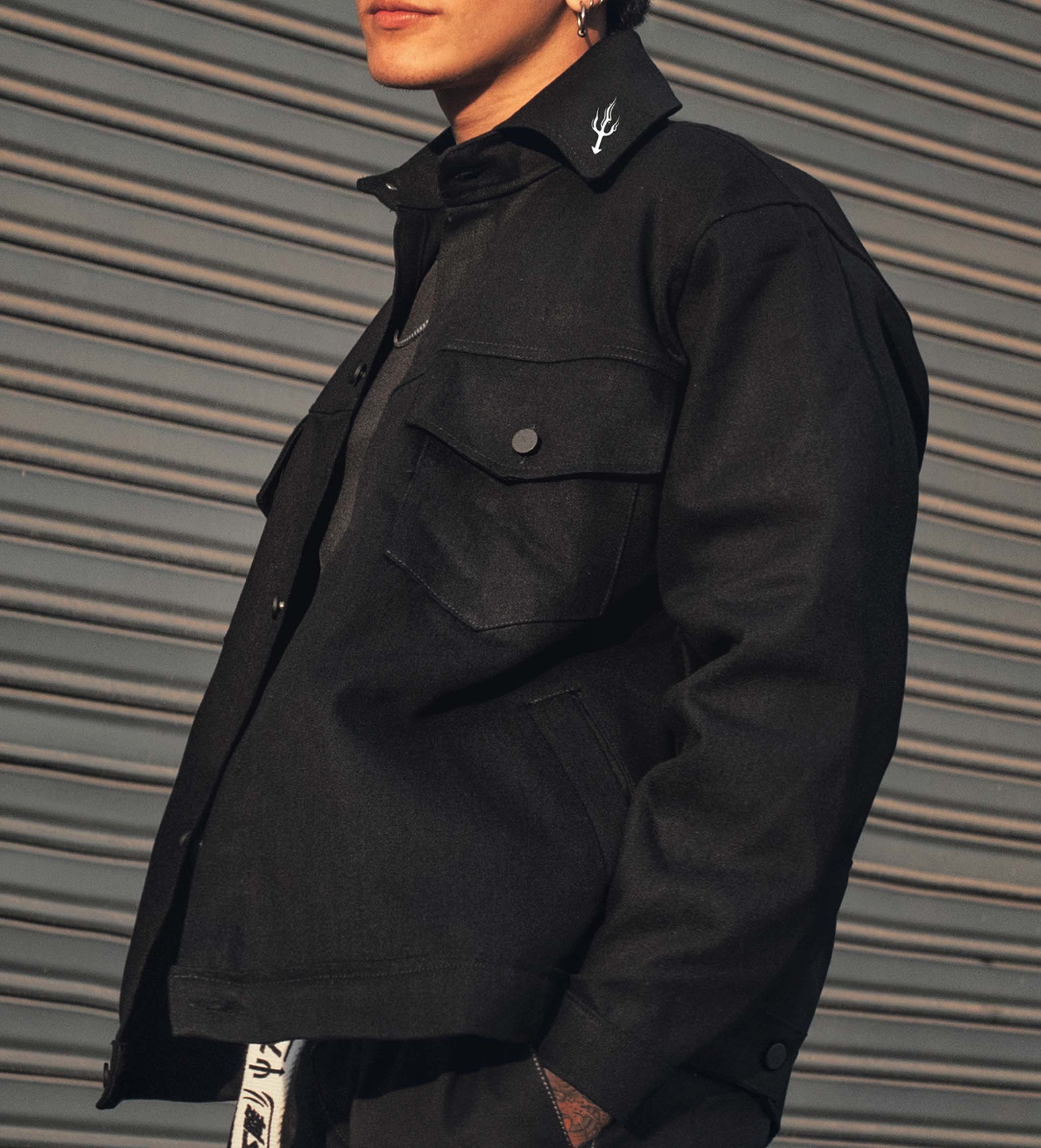 Chaqueta de Jean de alto gramaje, estampada en serigrafia con bolsillos externos y internos funcionables OVERSIZE