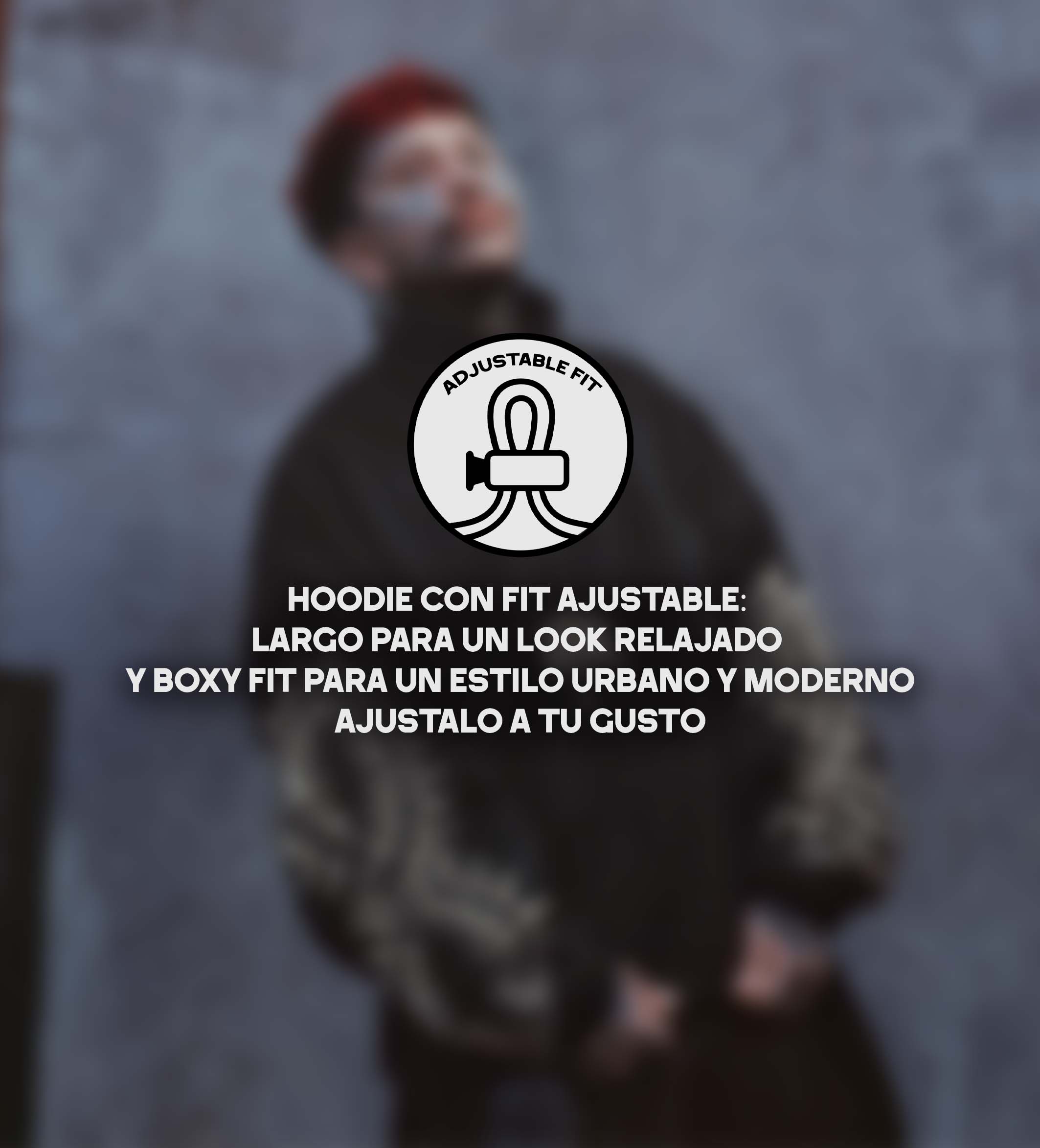 Buzo oversize con estampado de serigrafía. Gracias a su fit ajustable en la cintura, la prenda permite cambiar entre un corte long fit (largo) y un corte boxy fit (Corto). Máxima versatilidad y adaptabilidad.